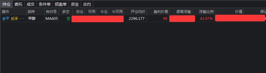 用其中一个账户做空的甲醇,盈利44%离场!